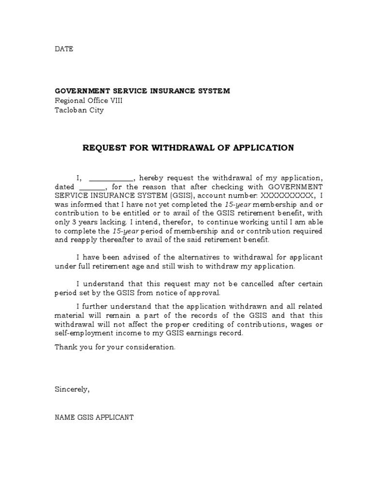 2 from You can follow these sample application for cancellation of admission in school, college or university for any reason like shifting house, going abroad, refund of fees etc. Uscis withdrawal letter does not need notarization. [below briefly describe on sample request application for cancellation of admission. In certain cases it is issued by individual persons also , which was written statement say that they no objection to the details present in documents. I very much appreciate your consideration for the (job title) with (company). After further thought, i have decided to withdraw my application for the position. Use your filing instructions to confirm that. Email withdrawing application for employment dear mr.